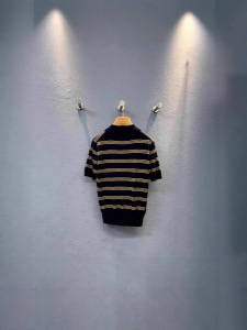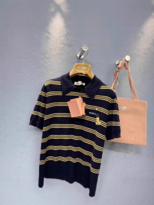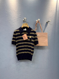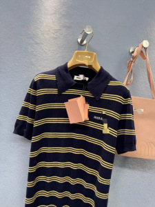 南油高版本MIU家新品羊毛混纺条纹Polo衫T恤