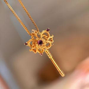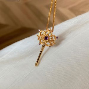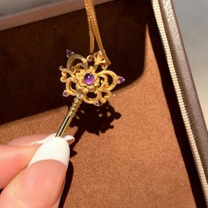 アメジストの妖精の杖レトロ宮殿スタイル vingtaga ゴールデンブラッシュマジックキーペンダントライト高級女性ネックレス