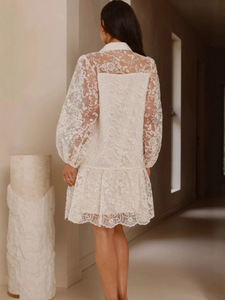 クロスボーダー貿易 2025 Amazon ヨーロッパとアメリカの春と秋のレース裏地付きセクシーなレース中空長袖ドレス女性用