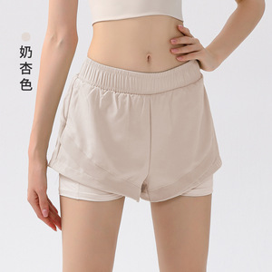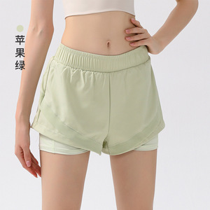 伊泽尔IuIu大码凉感运动休闲瑜伽短裤健身中高腰宽松防走光假两件