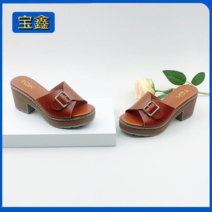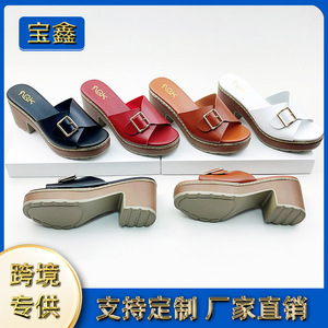 跨境大码粗跟拖鞋女2025年夏季时尚爆款皮带扣轻便拖鞋女厂家直销