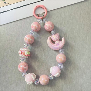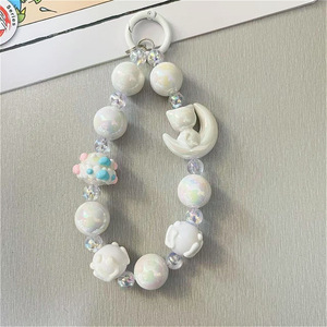 外贸电镀炫彩卡通月亮猫手机链挂件串珠手绘diy包包挂链手机链