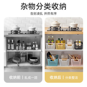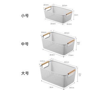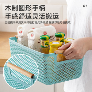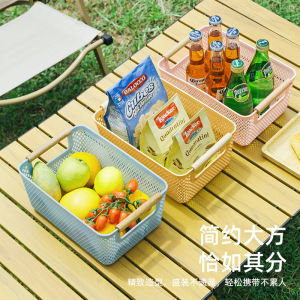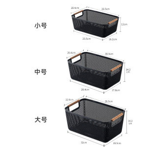 跨境木柄收纳篮收纳筐杂物塑料浴室床头桌面厨房户外水果储物家用
