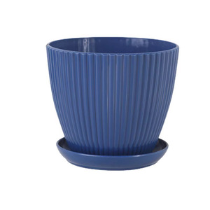 多肉花盆家用塑料小号树脂盆栽圆形北欧风阳台小竖纹加厚盆带托盘