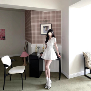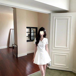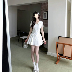 海盐茉莉学院风白色衬衫连衣裙夏季初恋感收腰百褶裙女