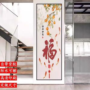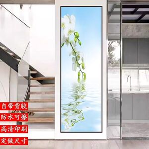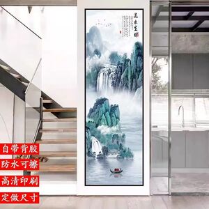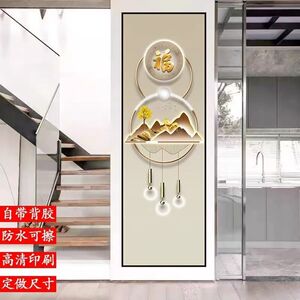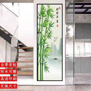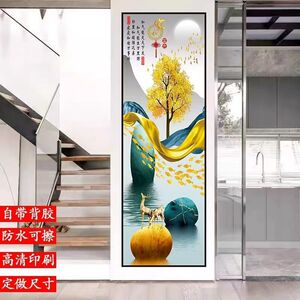 玄关装饰画走廊壁画竖图墙纸自粘画背景墙贴画客厅PVC哑光纸贴画