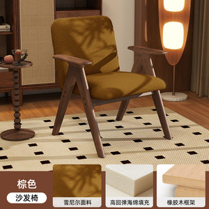 中古风单人沙发椅设计师酒店民宿客厅阳台实木休闲椅复古单人沙发