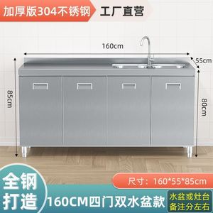 304不锈钢橱柜家用厨房灶台柜碗柜洗菜一体简易不锈钢橱柜餐边柜