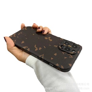 潮牌经典老花全包手机壳适用iPhone16promax皮质14保护套14/15pro