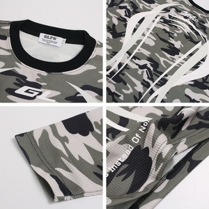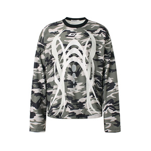 秋季新款设计感小众美式复古迷彩撞色字母印花宽松休闲打底衫体恤