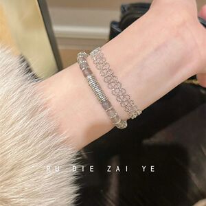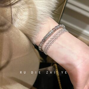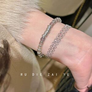 库宁 玉如烟~银色蕾丝手链琉璃灰盘缠新中式串珠轻奢高级感手链