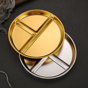 韩式304不锈钢分格餐盘定量三格圆盘减脂餐盘烤肉店调料盘小吃盘
