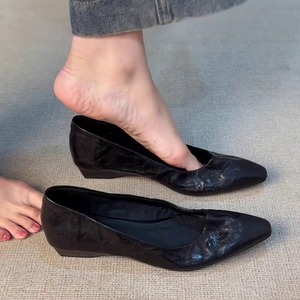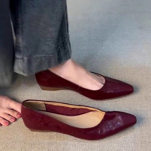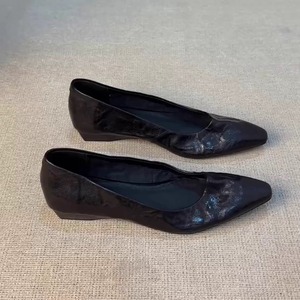 现货版~尖头法式气质浅口百搭软底舒适褶皱设计小众日常通勤单鞋