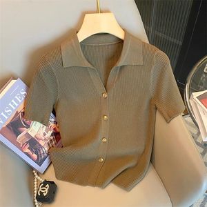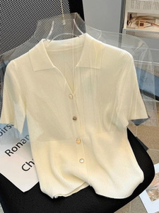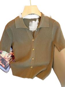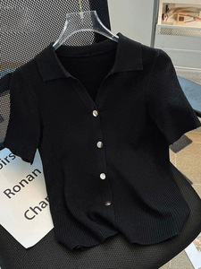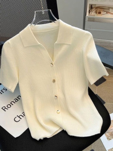 polo领正肩针织短袖t恤女翻领夏季2025显瘦薄款小衫百搭开衫上衣