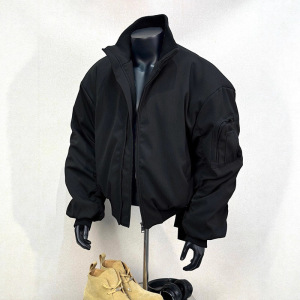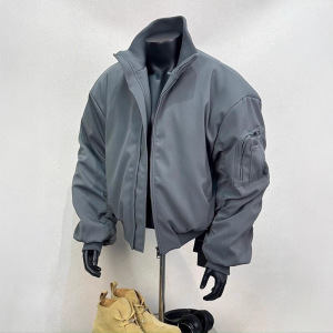 黑色廓形短款立领夹克男秋冬美式复古高级感bomber飞行员工装夹克