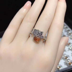批发 天然黑金超招财猫戒指 发丝饱满精工镶嵌百搭时尚小众计款