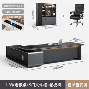 1.8米老板桌(单侧柜+五门书柜+老板椅)+升级烤漆桌面