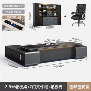 2.8米老板桌(豪华双柜)+老板椅+升级烤漆桌面