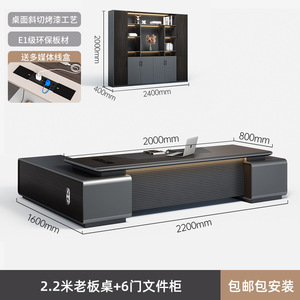 2.2米老板桌(豪华双柜+六门书柜+老板椅)+升级烤漆桌面