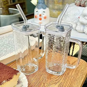 【2只装】锤纹方杯+盖+吸管