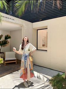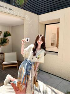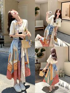 梵高文艺风2025夏季新款复古抽绳绑带半身裙+米杏色上衣两件套装