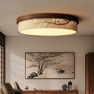 宋代の美的ラウンドシーリングランプ禅中国風の竹の葉の絵画生地シーリングライトリビングルームベッドルームルームメインライト
