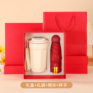 现货咖啡杯雨伞礼品空盒雨伞咖啡杯包装空盒子保温杯加伞包装礼盒