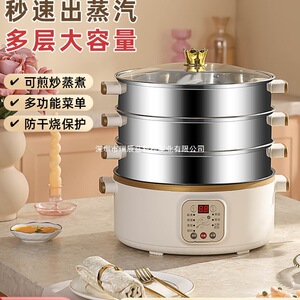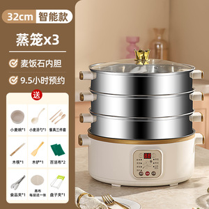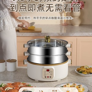 電気鍋、蒸し・煮込みオールインワン鍋、ステンレス電気蒸し器、小型電気蒸し器、多機能家庭用三層予約タイマー