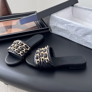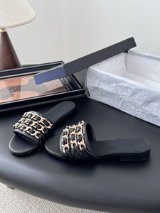 高配版~2025新款链条平底外穿拖鞋百搭平跟方头露趾气质一字拖鞋