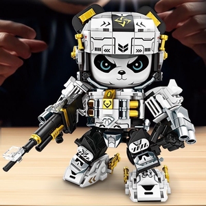 新款潮玩熊猫机甲宇航员积木拼装玩具模型摆件男女孩子礼物