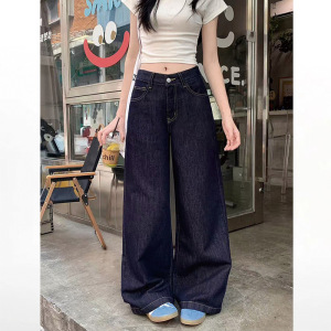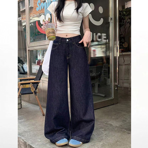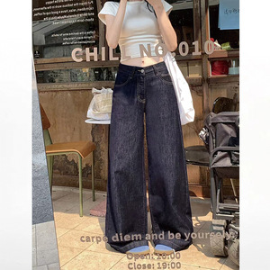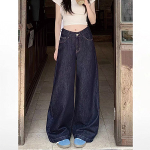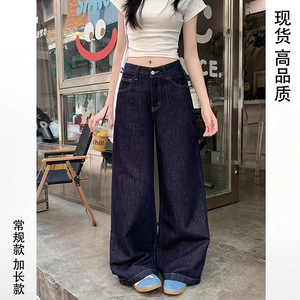 美式复古阔腿牛仔裤女2025春夏新款高腰宽松显瘦辣妹直筒拖地长裤