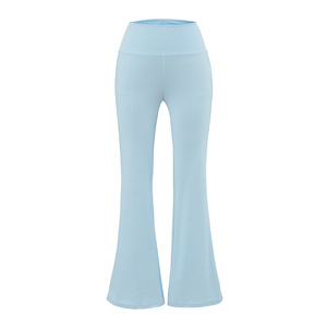 女性用折りたたみウエストマイクロフレアフロアレングスパンツ、ヒップアップ、伸縮性、スリムフィット、速乾性ドレープパンツ