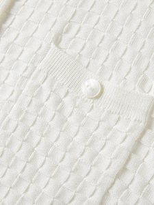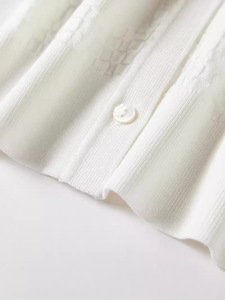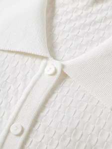 之禾桑蚕丝针织纯色打底衫中袖镂空翻领短袖开衫简约时尚真丝