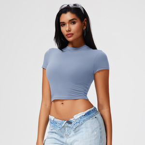 跨境百搭健身上衣t恤女夏运动高弹显瘦漏脐高级感普拉提瑜伽上衣