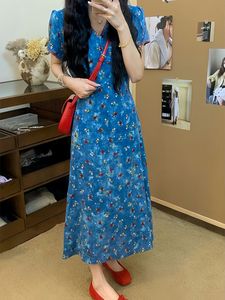法式气质小清新V领碎花连衣裙女夏季新款设计感海边度假风长裙子