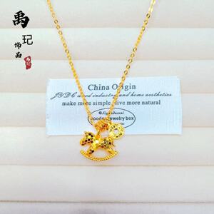 金店同款古法沙金碎碎冰马上有钱项链摇摇木马跑环钱币锁骨链批发