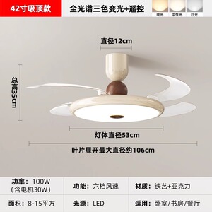 奶油色+胡桃木色 吊扇款-42寸-三色 带遥控 【100W】