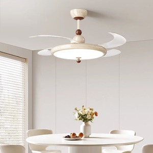2025年新款风扇灯全光谱餐厅一体吊扇灯法式奶油风隐形客厅电扇灯