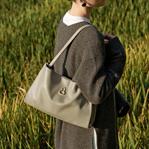 BAMPO ハーフスロープ フリーファンシーバッグ 第一層牛革 ショルダー 通勤 ひょうたん トートバッグ レディース