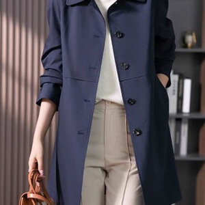 大衣休闲风衣女中长款气质春秋新款上衣外套潮2025时尚雪尼尔氨纶