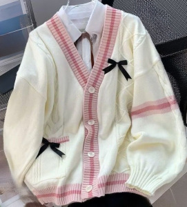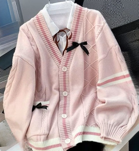 2025 日本の秋と冬の新しいスタイルのレイジースタイルデザインニットカーディガンボウツイストルーズセータージャケット女性用
