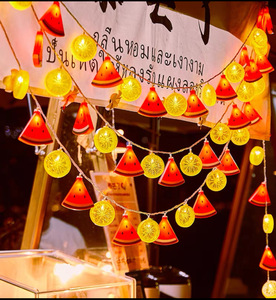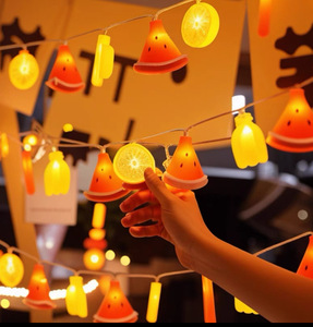 屋外屋台雰囲気ライト、夜市、フルーツ屋台、ワインボトルライト、小さなカラフルなライト、トランク誕生日装飾ライト