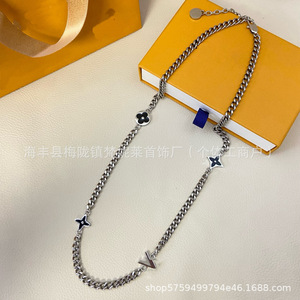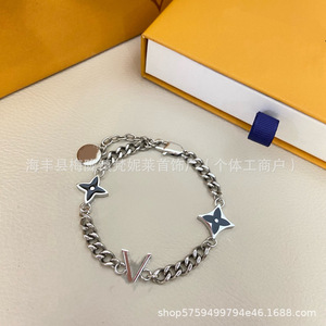 驴家新款四叶草欧美V字手链黑滴油圆形方形四叶花项链情侣款跨境