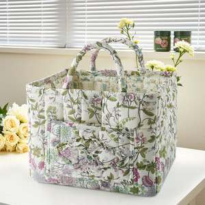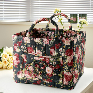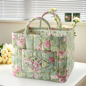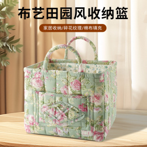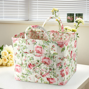 クロスボーダー韓国風ホームパストラルスタイル布製収納バスケット衣類雑貨収納バスケット花柄ハンドル付き下着収納