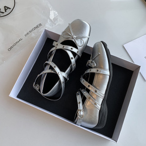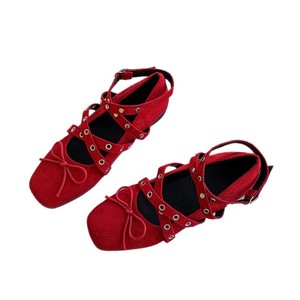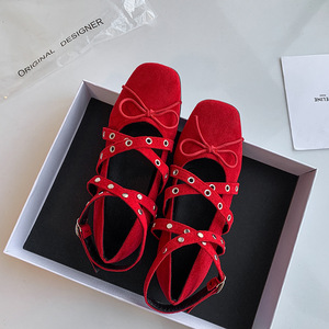 ソフトレザーバージョン〜女性用リボンフラットバレエシューズ、新しいリベットバックルストラップ、レトロな小さなフレグランススタイルのメリージェーンシューズ