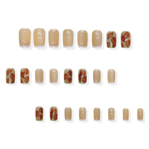 シンプルな秋のカエデの葉白フレンチチャイニーズウェアラブルマニキュアネイルサンクスギビングフェイクネイルプレスネイル