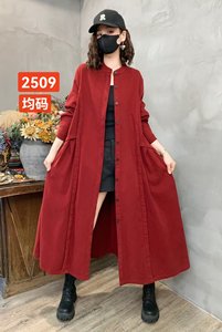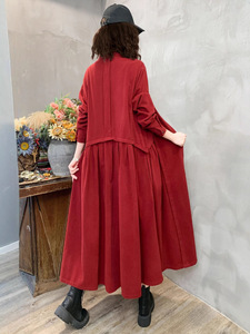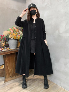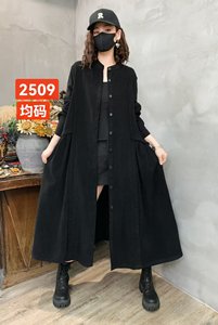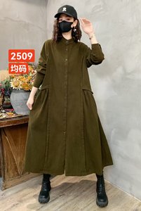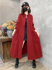春秋新款复古宽松显瘦单排扣连衣裙休闲大码立领长袖风衣外套批发