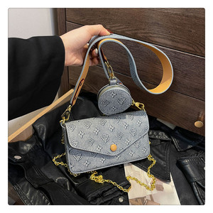 轻奢老花链条小方包女2025新款高级感百搭三合一信封包单肩斜挎包