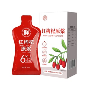 早红晚黑枸杞原浆饮品宁夏红枸杞鲜果汁原液异形袋30ml盒装代发