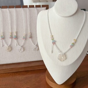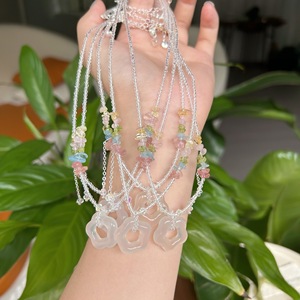 春夏新款天然玉髓镂空小清新花朵水晶项链女小众多宝设计项链